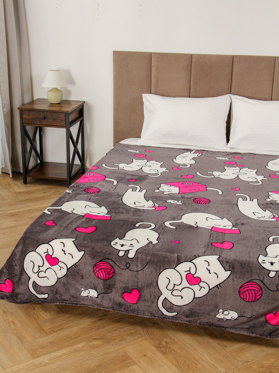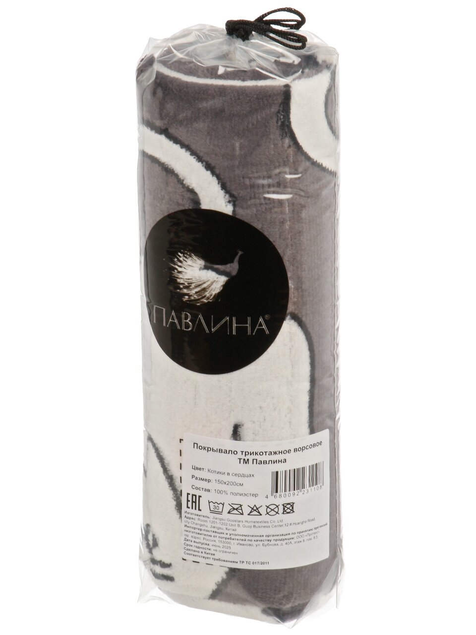 Плед 1,5-спальный 150х200 см «Котики в сердцах» от бренда Павлина: уютное решение для дома, дачи или автомобиля по доступной цене — мягкость, тепло и стиль в одном аксессуаре.
