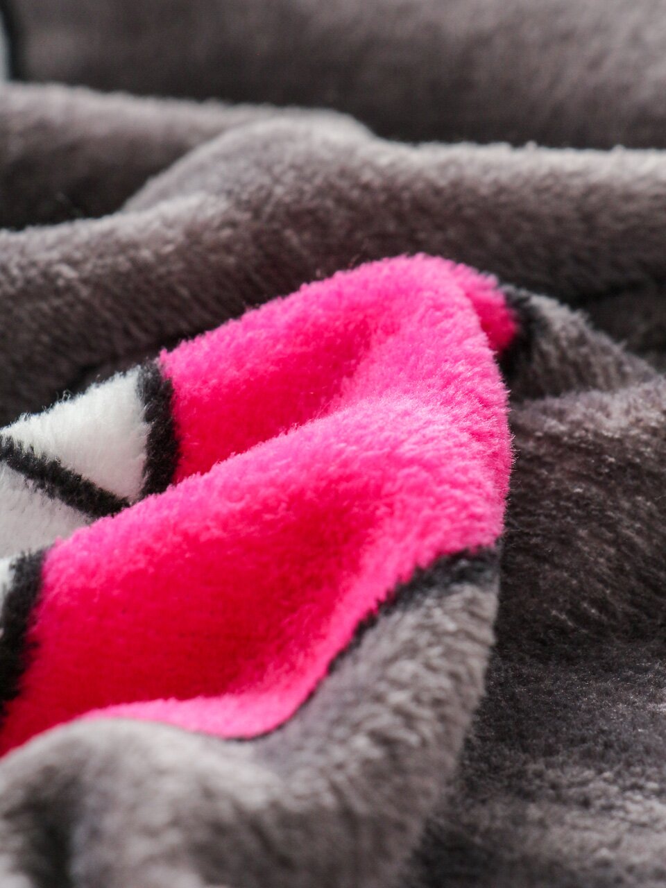 Плед изготовлен из 100% полиэстера с коротким ворсом, не требует сложного ухода — достаточно стирать при температуре до 30°C, чтобы сохранить мягкость и яркость рисунка.