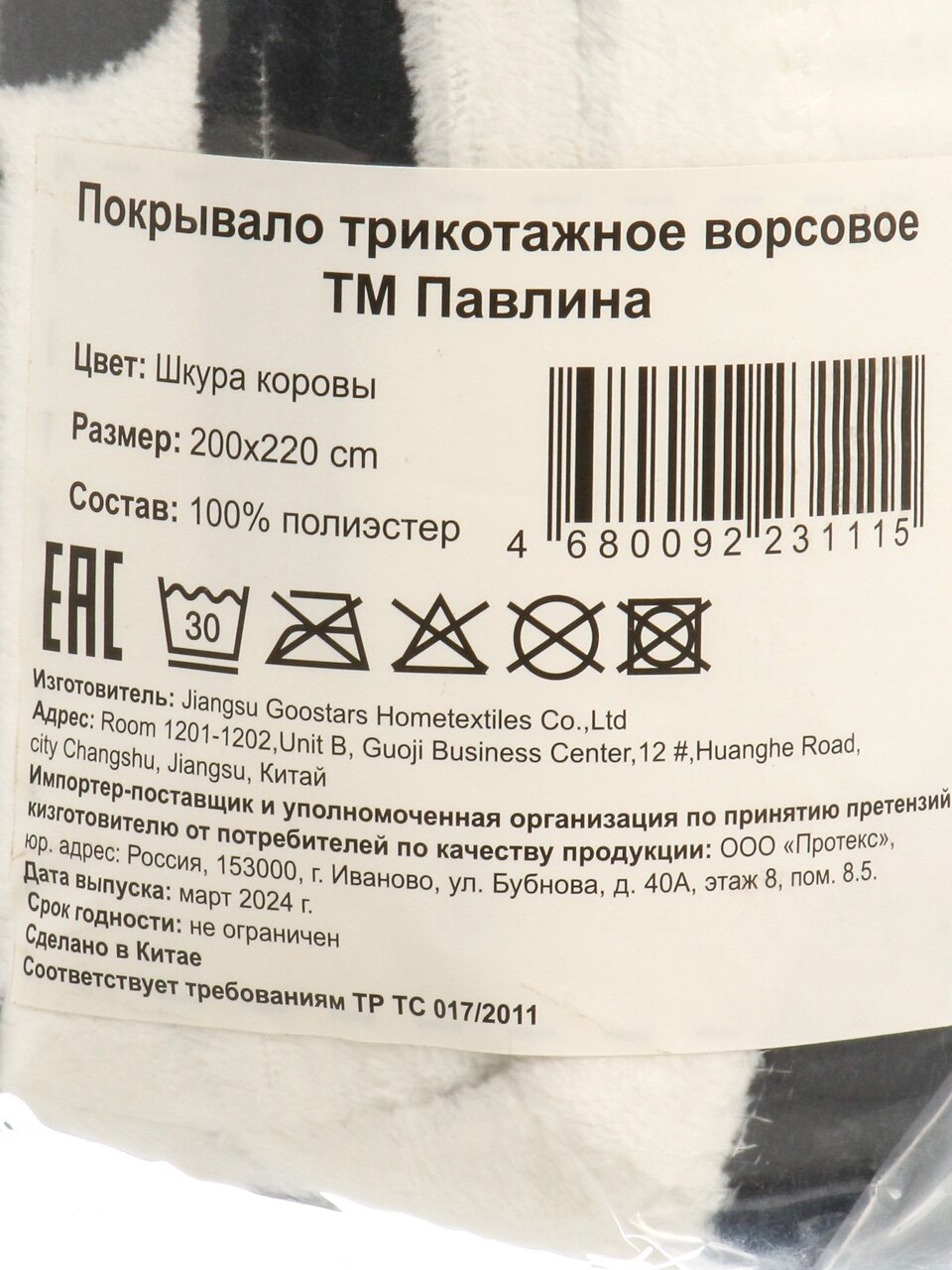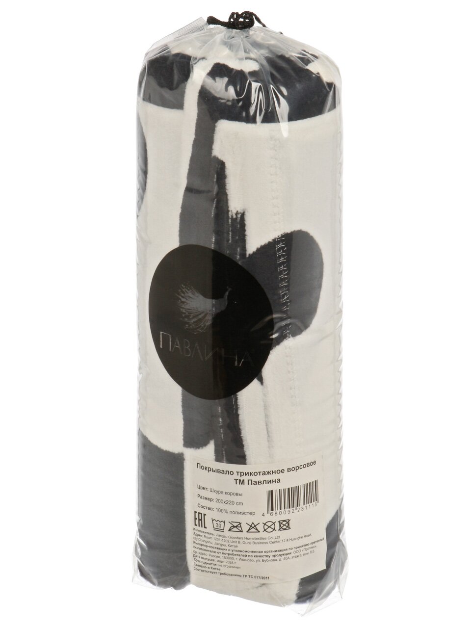 Плед евро, 200х220 см, 100% полиэстер, Павлина, Шкура коровы