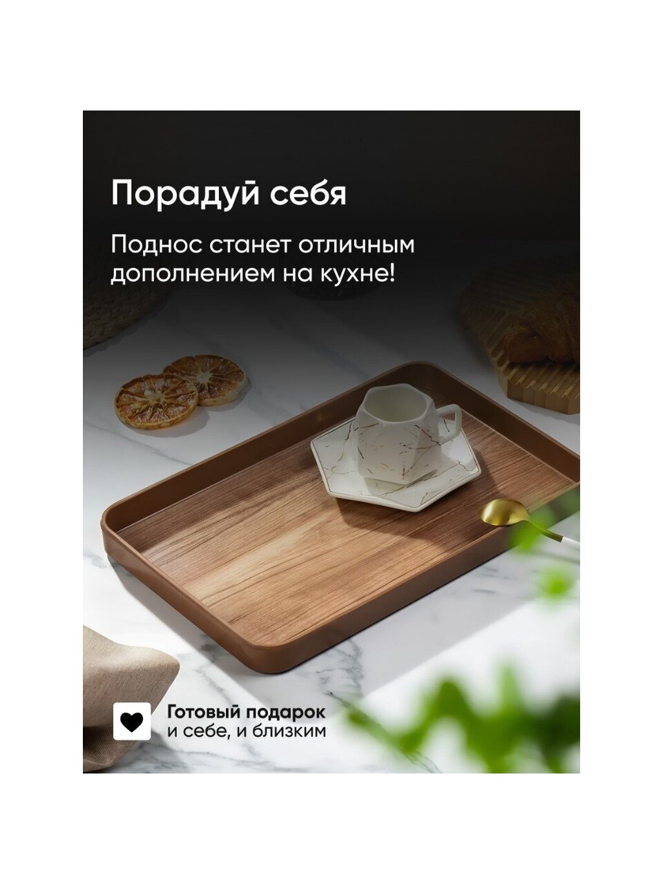 Поднос - это функциональный и стильный аксессуар для сервировки стола и стилизации домашнего пространства. Поднос можно использовать в качестве подставки под горячее. Он не боится высоких температур.