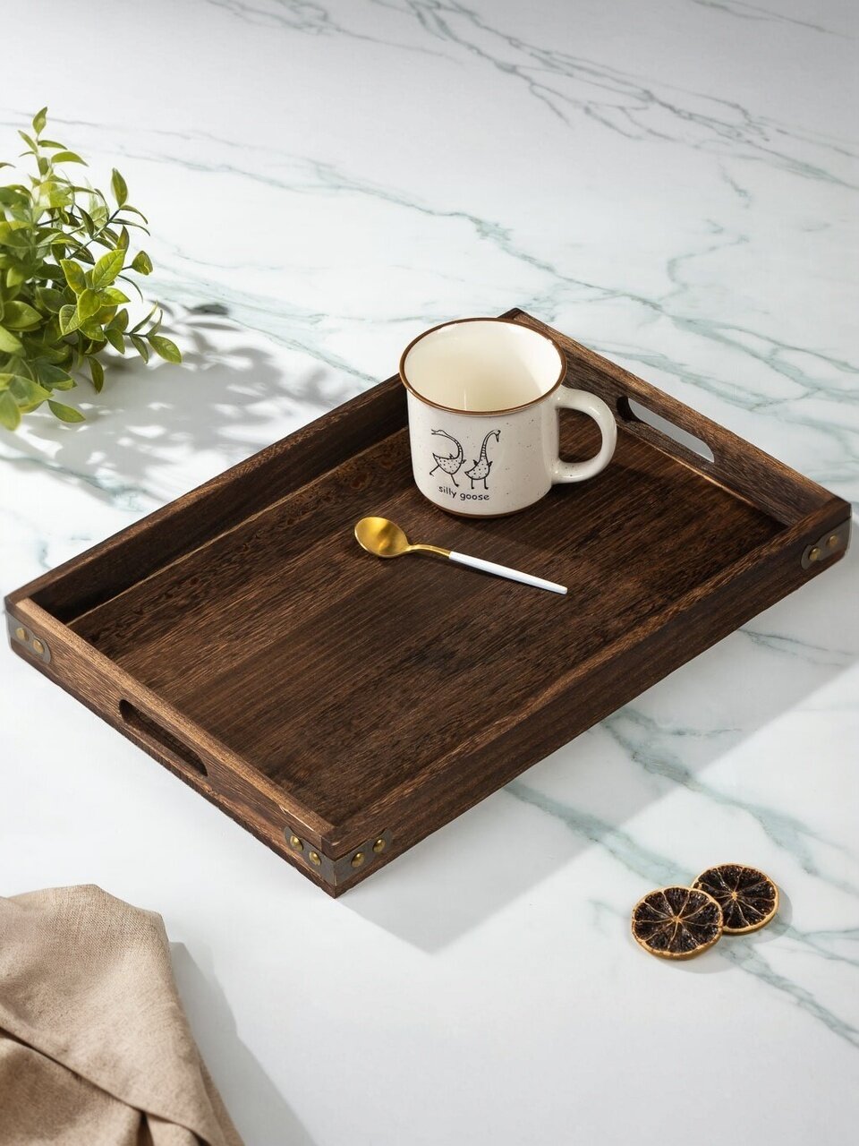 Покупка этого подноса из дерева - это инвестиция в уют и стиль вашего дома. Он не только выполняет практическую функцию, но и становится элементом декора, который подчеркивает ваш вкус и внимание к деталям. Используйте его для создания атмосферных моментов, будь то романтический завтрак или вечер в кругу друзей. Этот поднос станет вашим незаменимым помощником в создании комфортной и стильной обстановки.