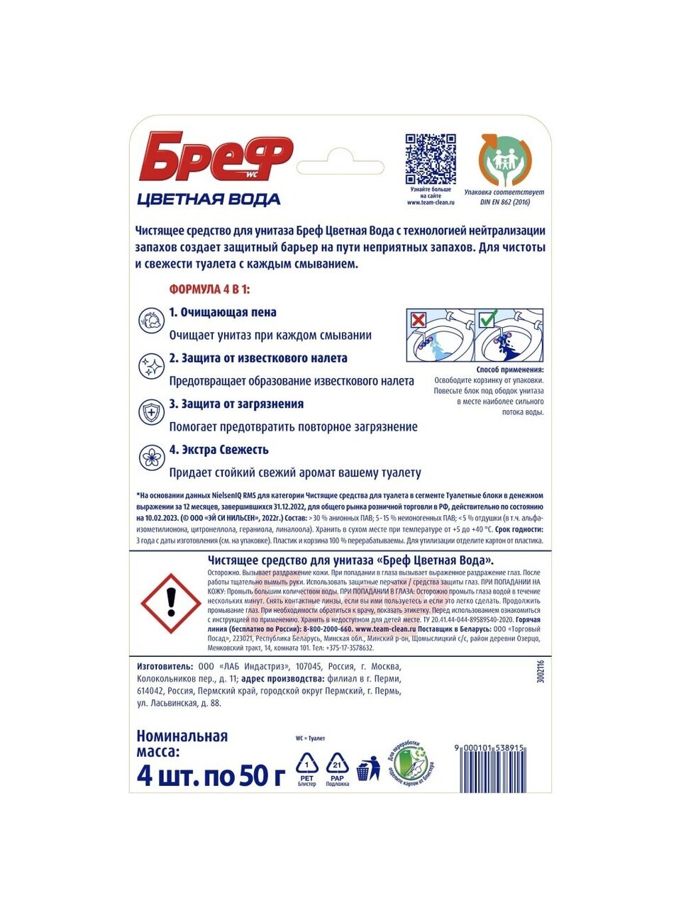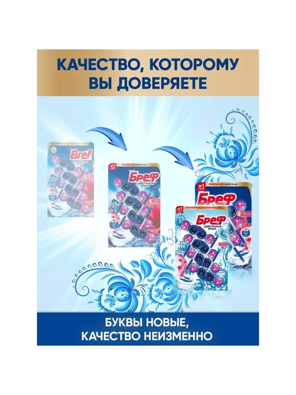 Бреф Колор Актив - видимый результат при каждом смывании.