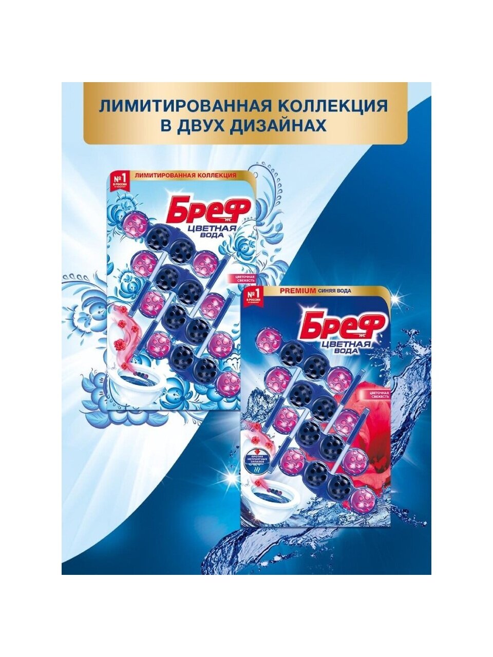 Бреф Колор Актив - подвесной туалетный блок с технологией нейтрализации, которая создает защитный барьер на пути неприятных запахов.