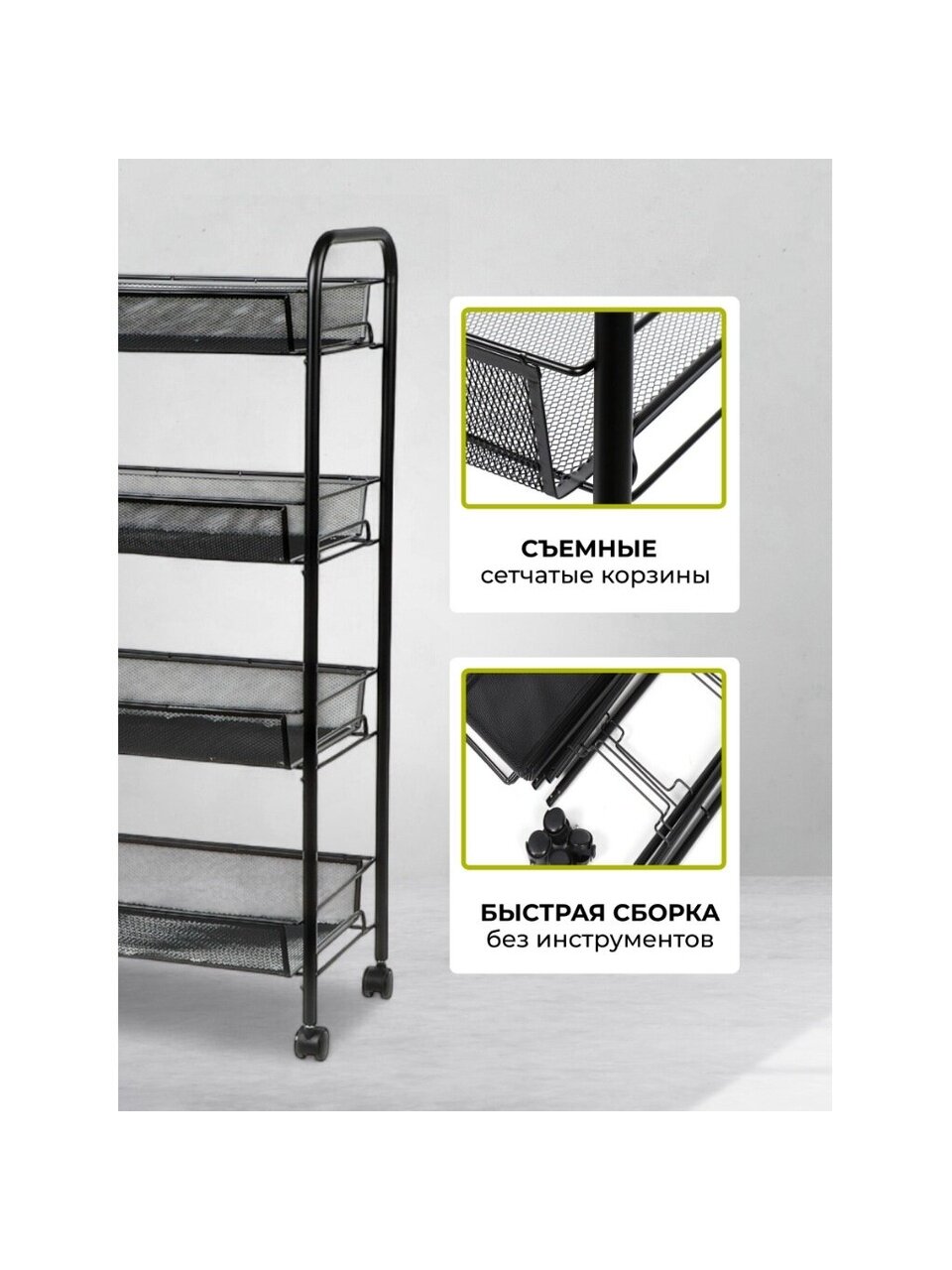 Вы можете приобрести «Этажерка универсальная, сталь, 4 секции, 42.5х26х83.5 см, на колесах, с мелкосетчатыми корзинами, черная, LD01-628-1» и другие товары в нашем интернет-магазине в Воронеже по низким ценам и с бесплатным самовывозом.