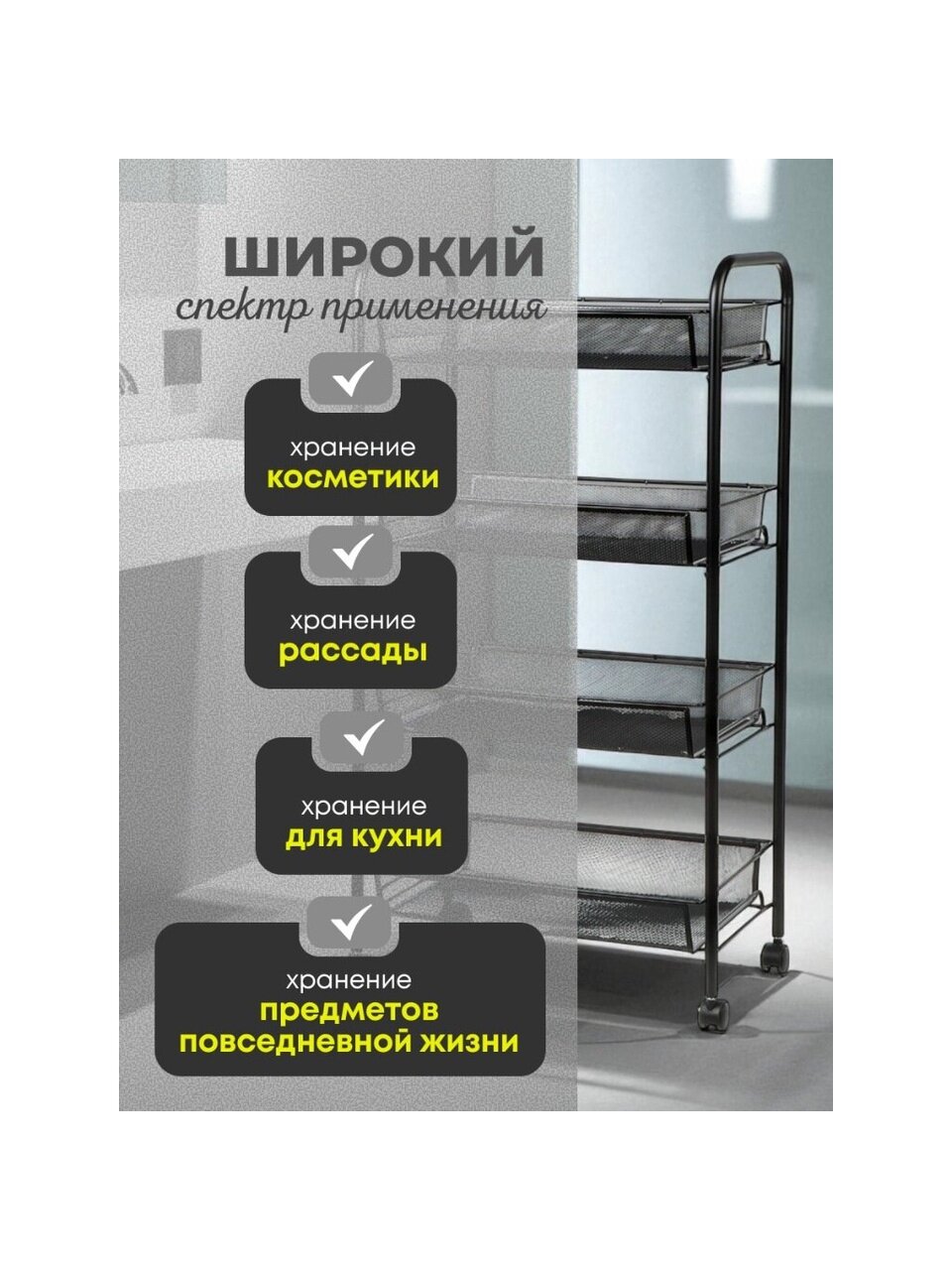 Этажерка LD01-628-1 не только помогает организовать пространство, но и экономит ваше время, избавляя от хаоса и беспорядка. Благодаря своей мобильности и универсальности, она может быть использована в различных комнатах: от кухни до ванной, от гостиной до кладовой. Прочная стальная конструкция гарантирует долгий срок службы, а стильный черный цвет делает ее отличным дополнением к современному интерьеру. Использование этой этажерки позволяет оптимизировать пространство, облегчая доступ к необходимым вещам и поддерживая чистоту и порядок в вашем доме.