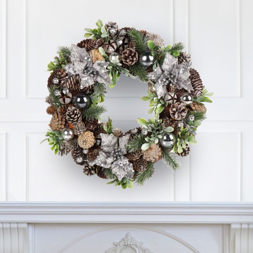 Живописный рождественский венок принесет долгожданный дух зимних праздников, сделает атмосферу в доме уютной, торжественной и элегантной. Этот венок со временем не осыпается и не создает никакого мусора при использовании, поэтому прослужит вам не один год и станет постоянным атрибутом декора вашего дома или рабочего пространства.