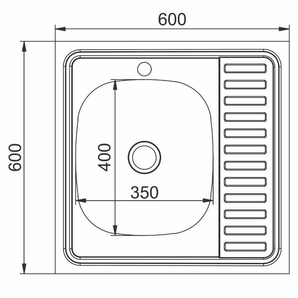 Мойка кухонная накладная, Mixline, нержавеющая сталь, 600х600 мм, правая, 0.4 мм