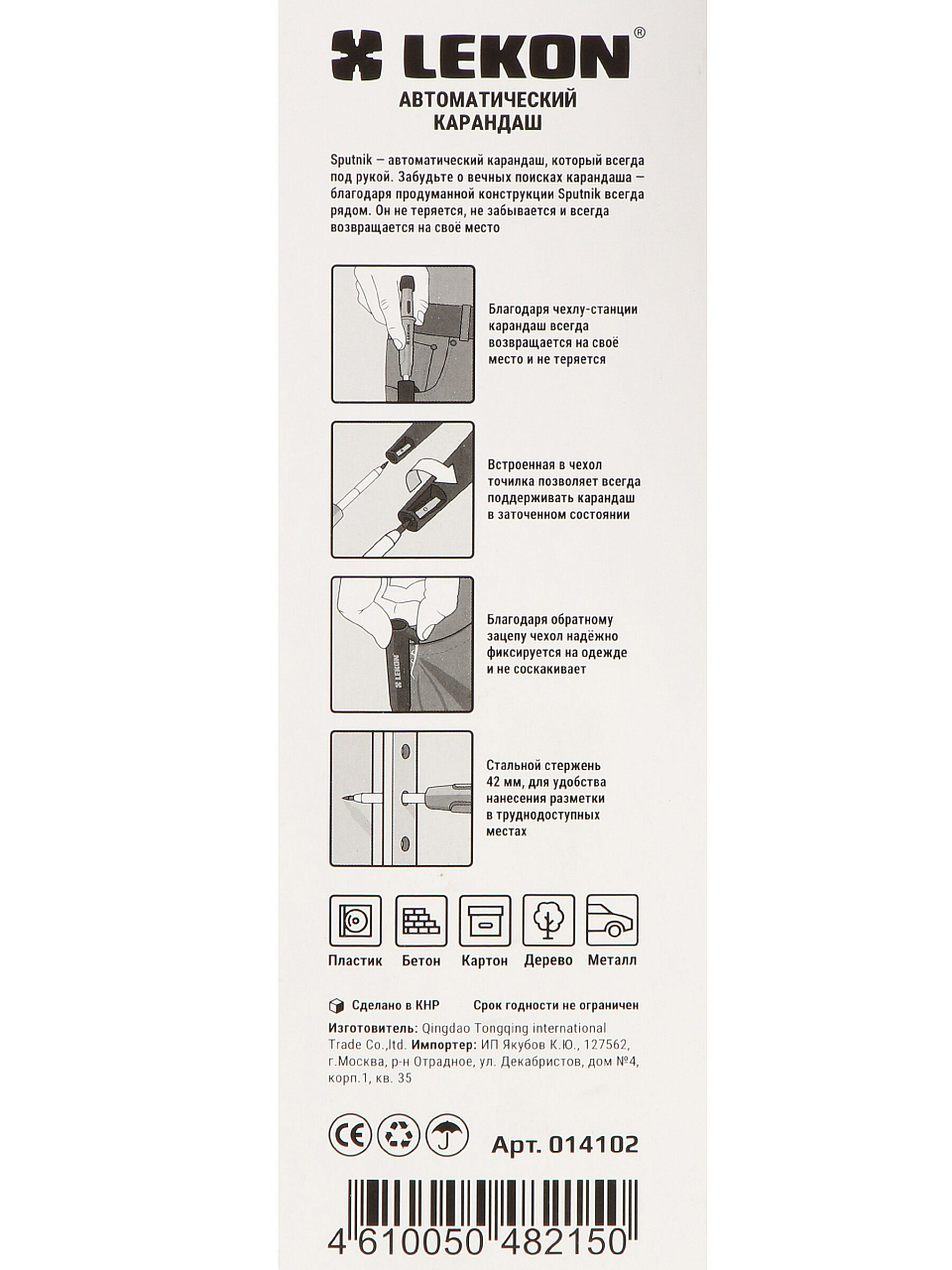 Закажите строительный карандаш Lekon Sputnik по выгодной цене — получите надежный инструмент с гарантией качества и быстрой доставкой. Упростите ремонт и стройку с профессиональными аксессуарами!