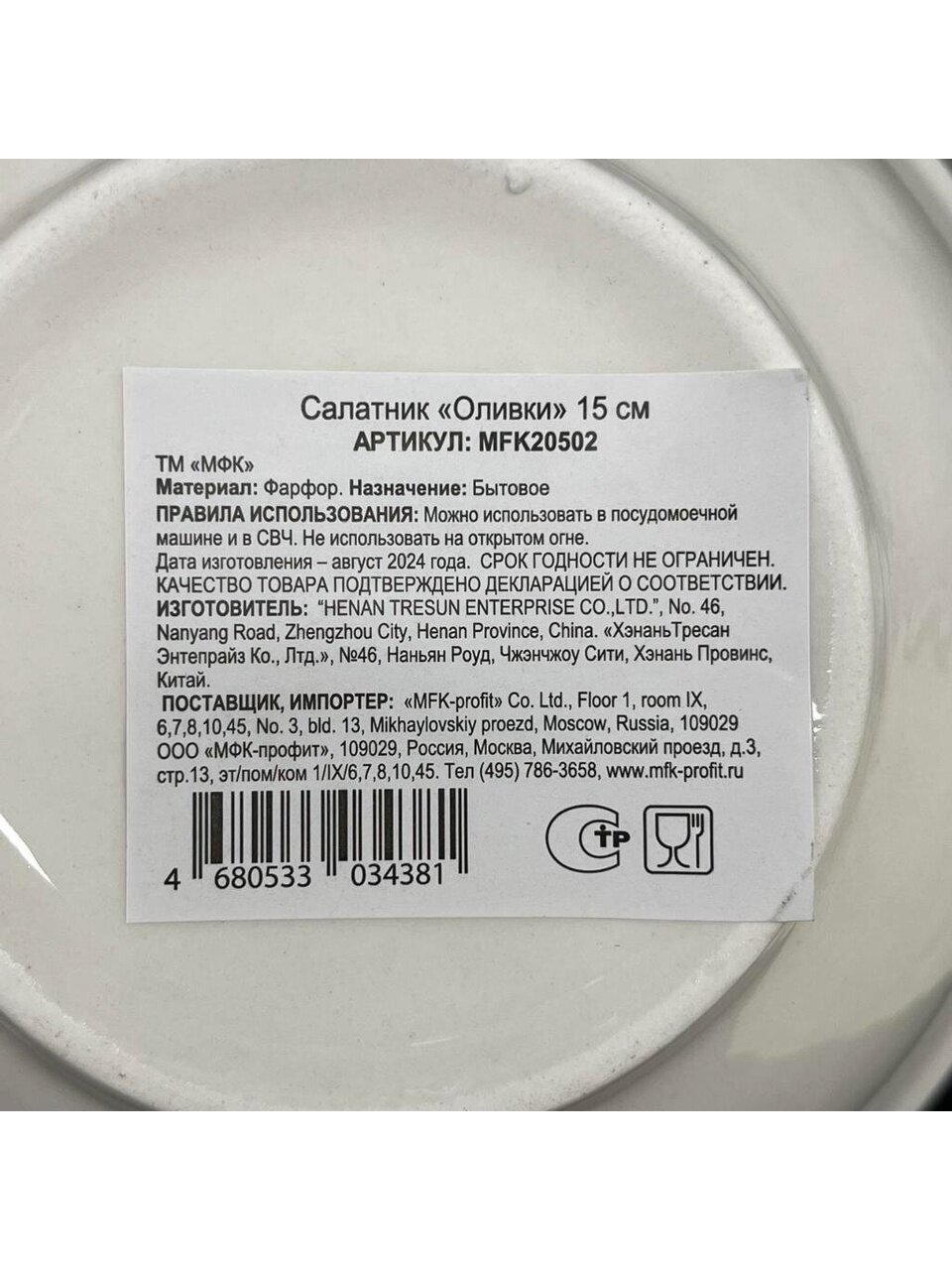 Салатник фарфоровый 15х5 см «Оливки» от МФК — стильное решение для сервировки, подходит для дома, дачи, подарка. Безопасен для СВЧ и посудомойки.