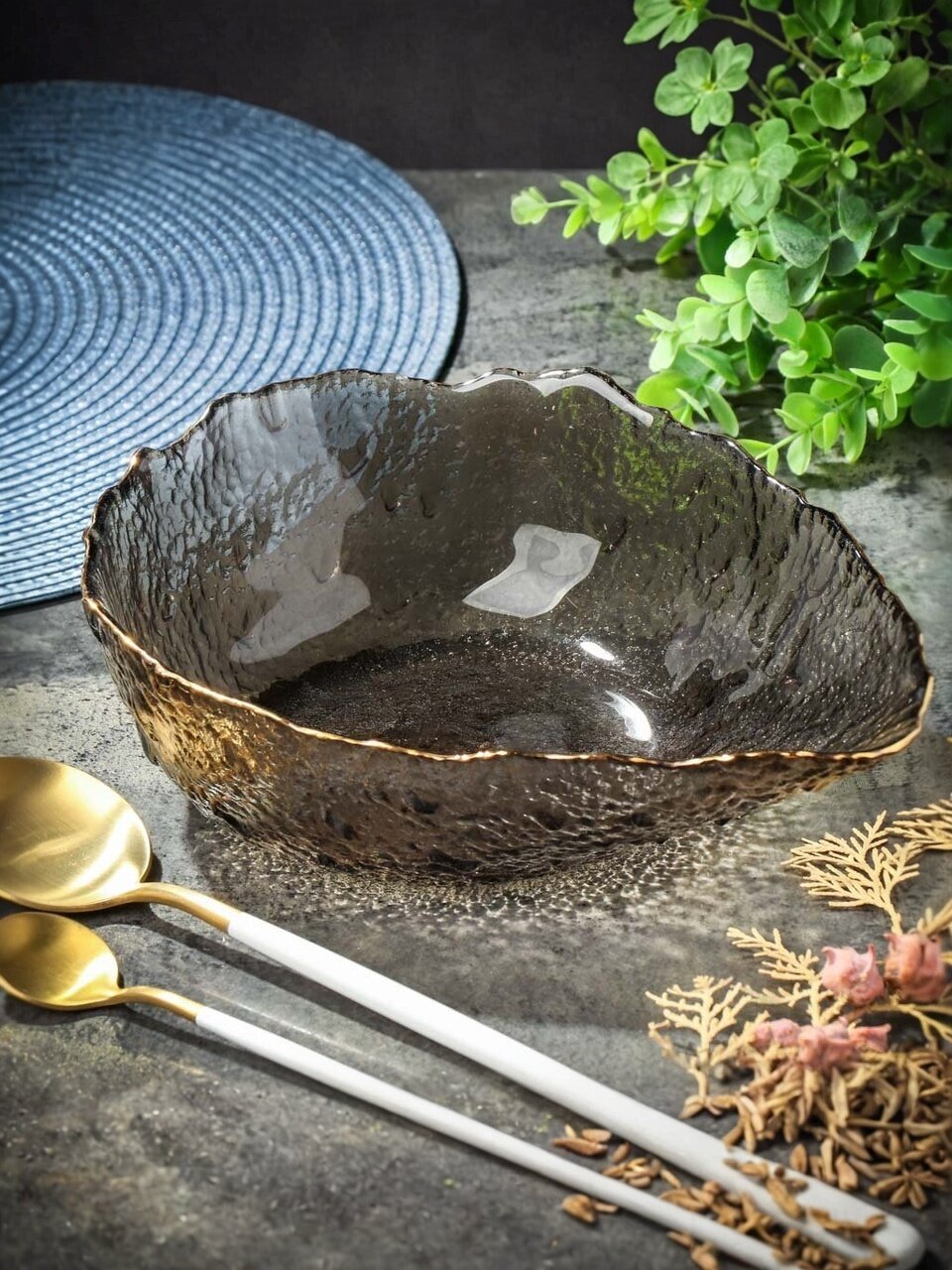 Салатник стеклянный «Графит» 0.8 л — стильное решение для сервировки, прочное стекло, рельефный дизайн и золотая окантовка для эффектной подачи блюд.