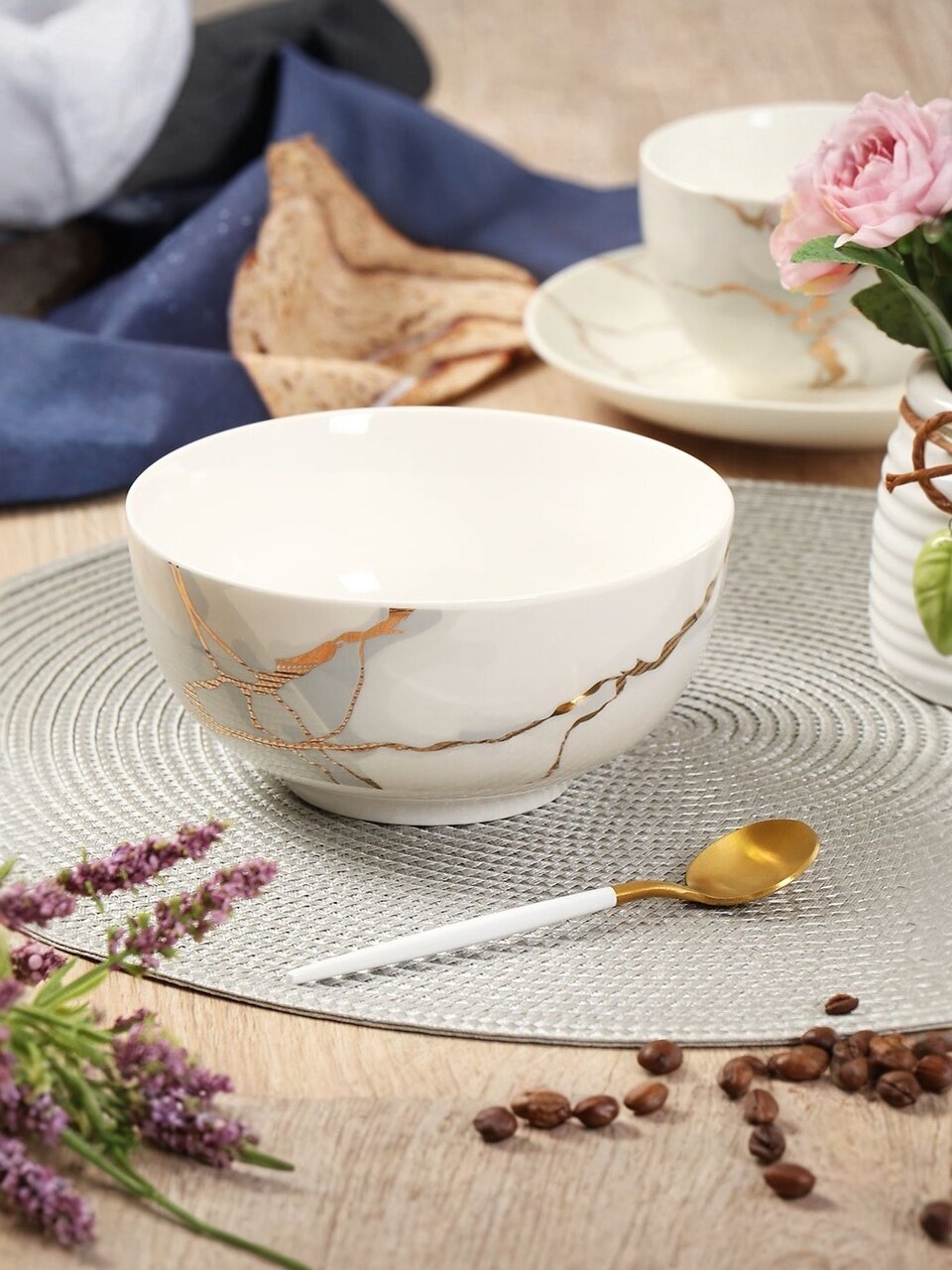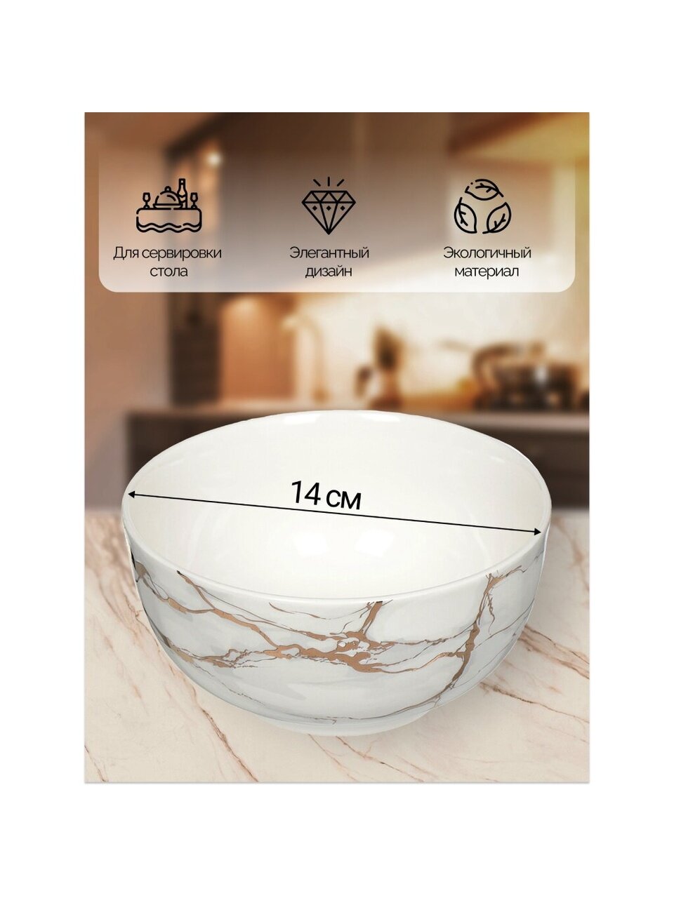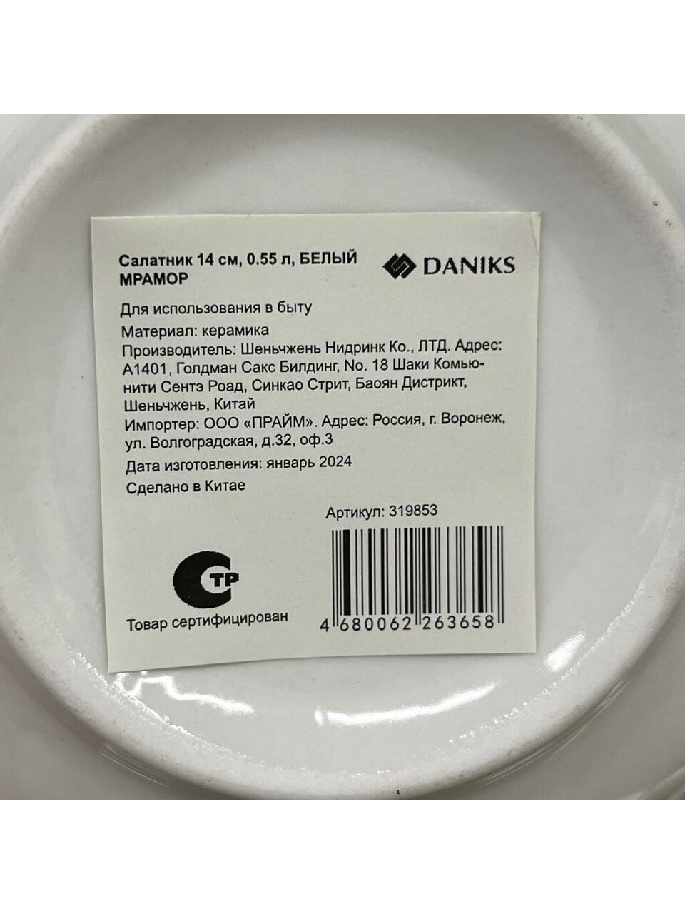 Салатник керамический Daniks Белый мрамор 14×6,5 см — стильное решение для сервировки, долговечность и универсальность для дома и дачи по выгодной цене.