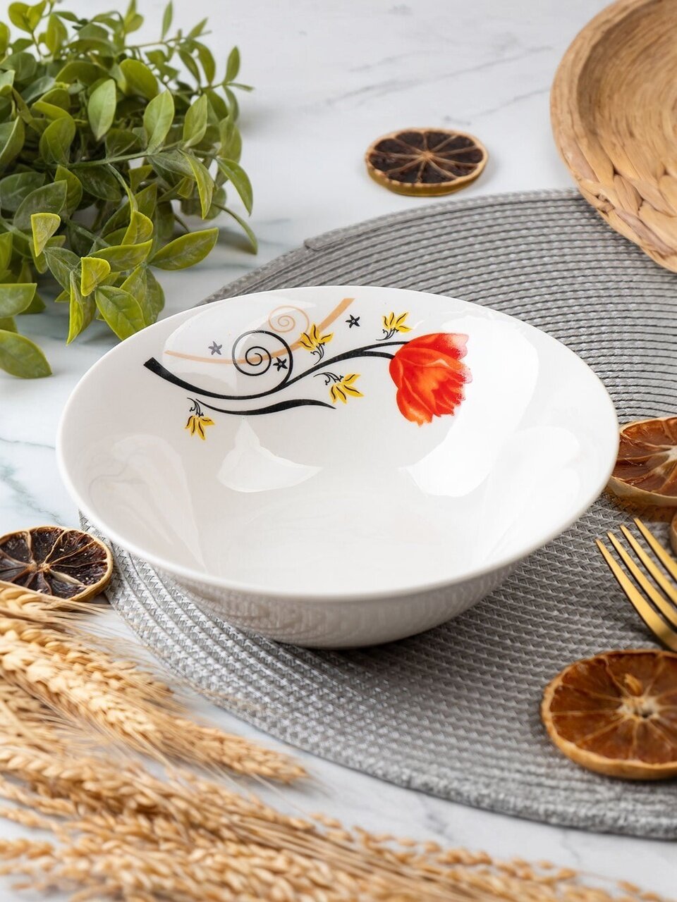 Салатник керамический Daniks 18х5 см, 0.6 л, с рисунком «Красный Тюльпан» — яркий акцент для сервировки, подходит для СВЧ и посудомоечной машины.