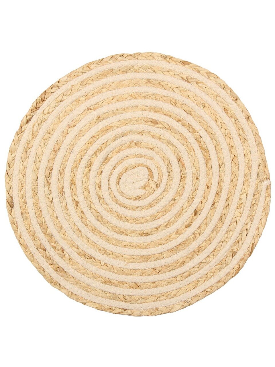 Салфетка выполнена из прочного полимера, имеет круглый диаметр 38 см и украшена узором «улитка» в бежевом цвете.