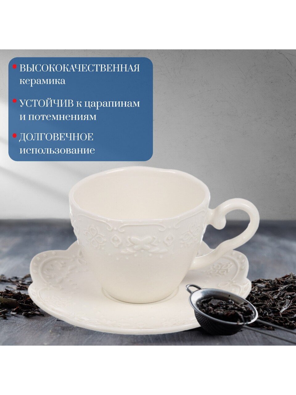 Объём каждой чашки — 200 мл, что оптимально для классической чайной порции. Все чашки и блюдца выполнены в едином стиле и идут в подарочной упаковке.