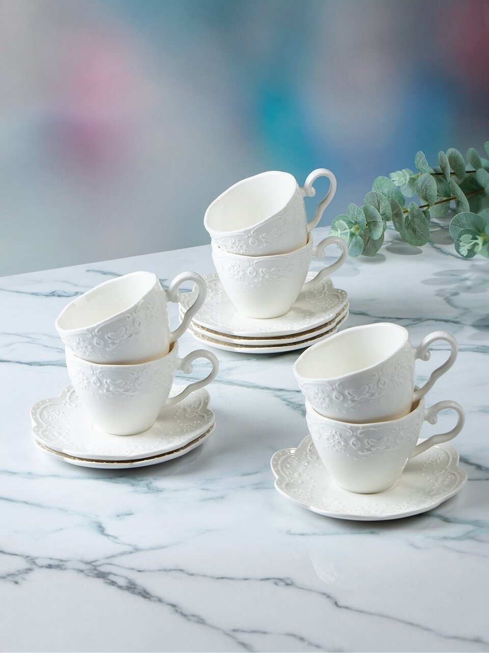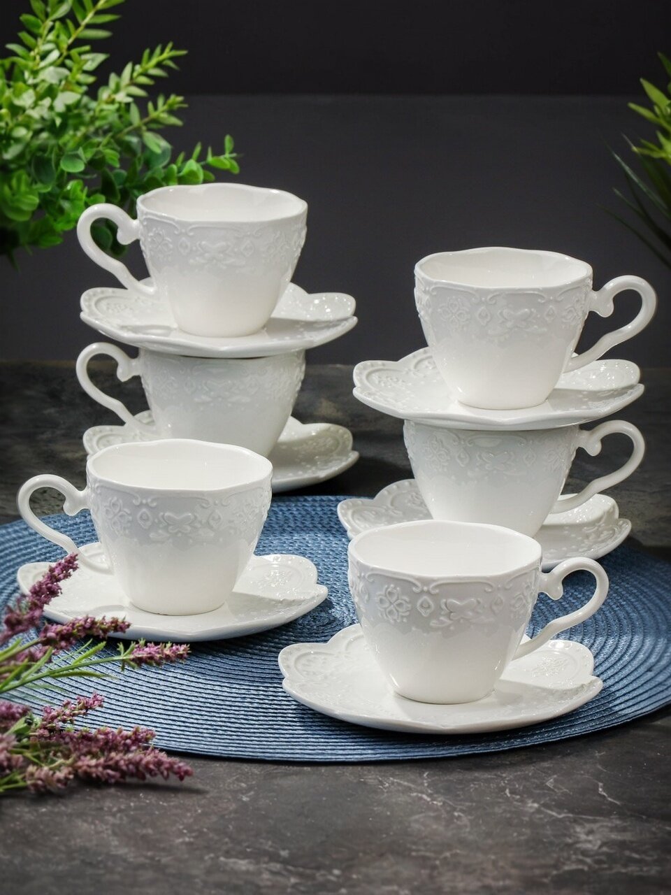 Набор чайный из керамики Daniks Ажур на 6 персон — стильный подарок и практичное решение для уютных чаепитий дома и на даче. 12 предметов, подарочная упаковка, можно мыть в посудомойке.