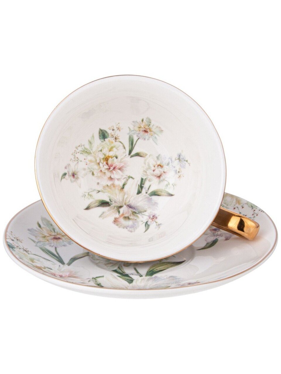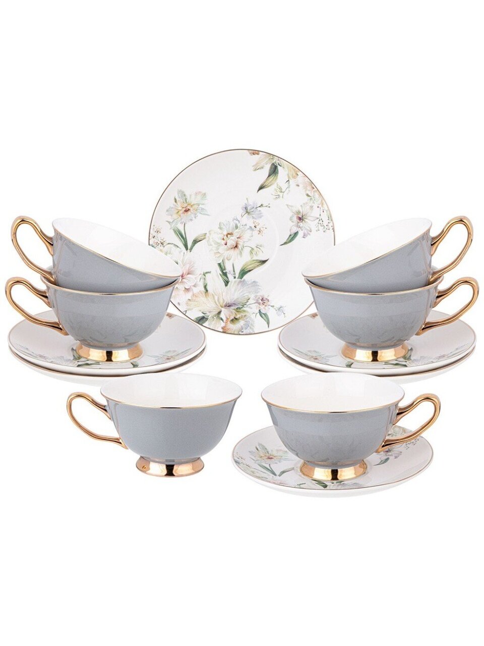 Премиальный чайный набор Lefard Four Seasons на 6 персон: 12 предметов из фарфора с цветочным рисунком и золотой каймой — идеальный подарок для дома и семьи.