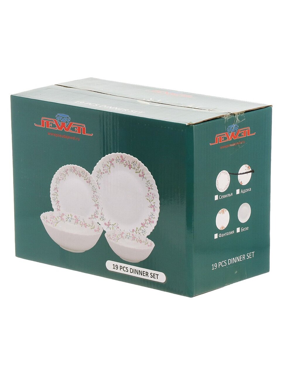 Столовый сервиз из стеклокерамики на 6 персон: 19 предметов Jewel Адона — практичный выбор для дома, дачи и подарка. Безопасен для СВЧ и посудомойки.