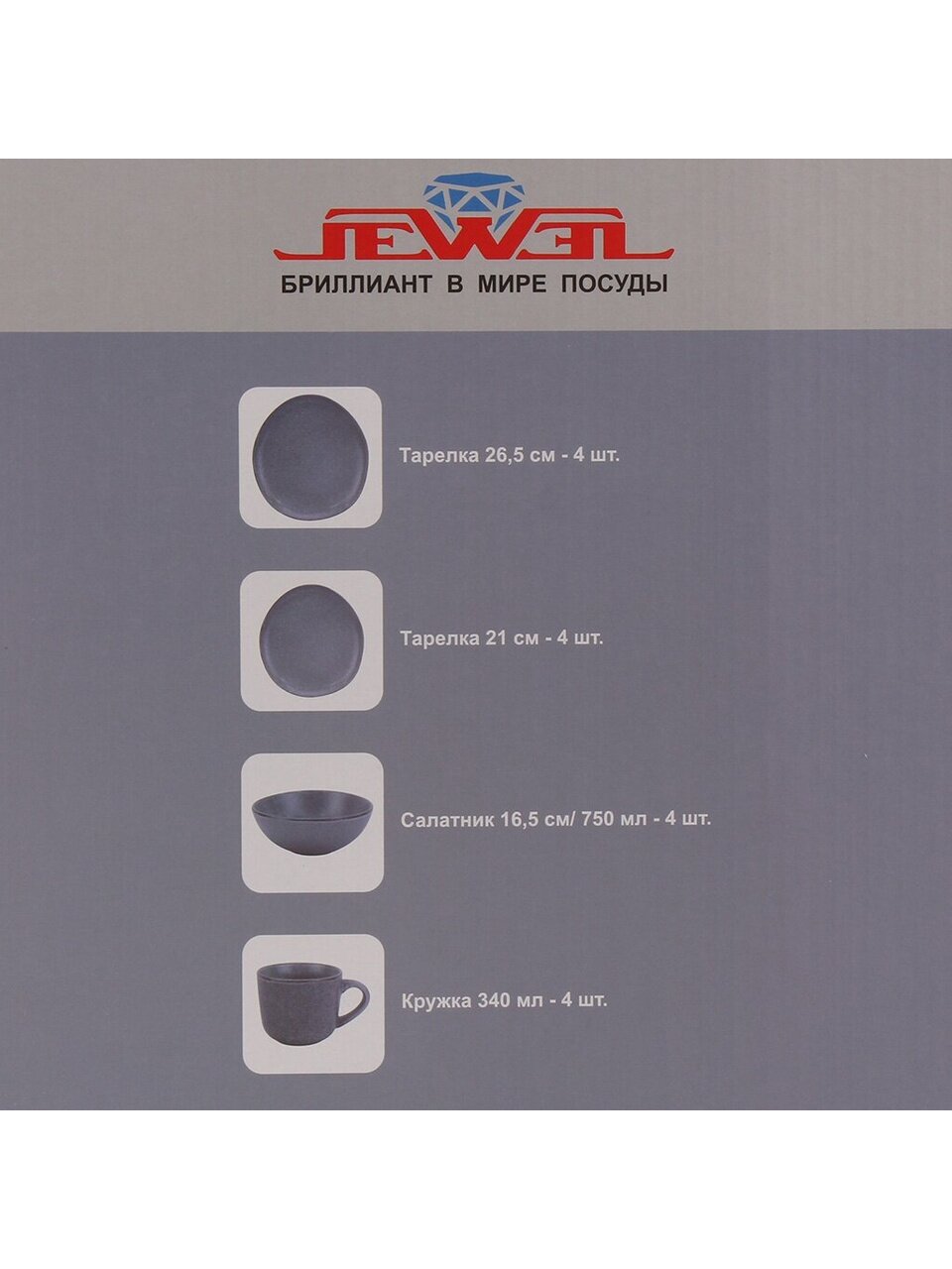 Столовый сервиз из керамики на 4 персоны Jewel Грей — 16 предметов для стильной сервировки: долговечность, универсальность, современный дизайн.