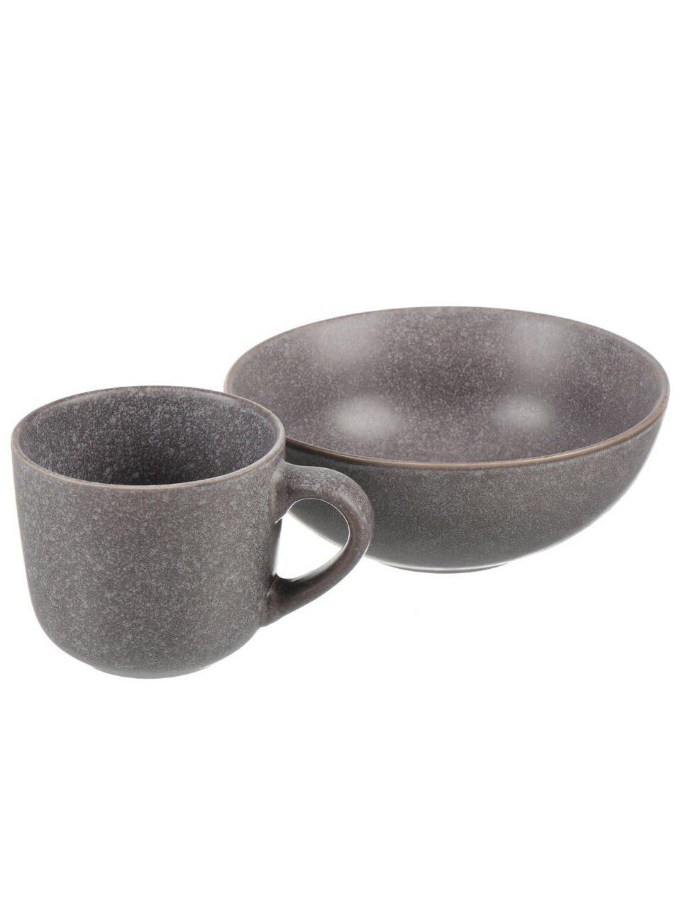В комплекте 16 предметов из керамики, общий вес — 9,47 кг; подходит для сервировки на 4 персоны, цвет — универсальный серый.