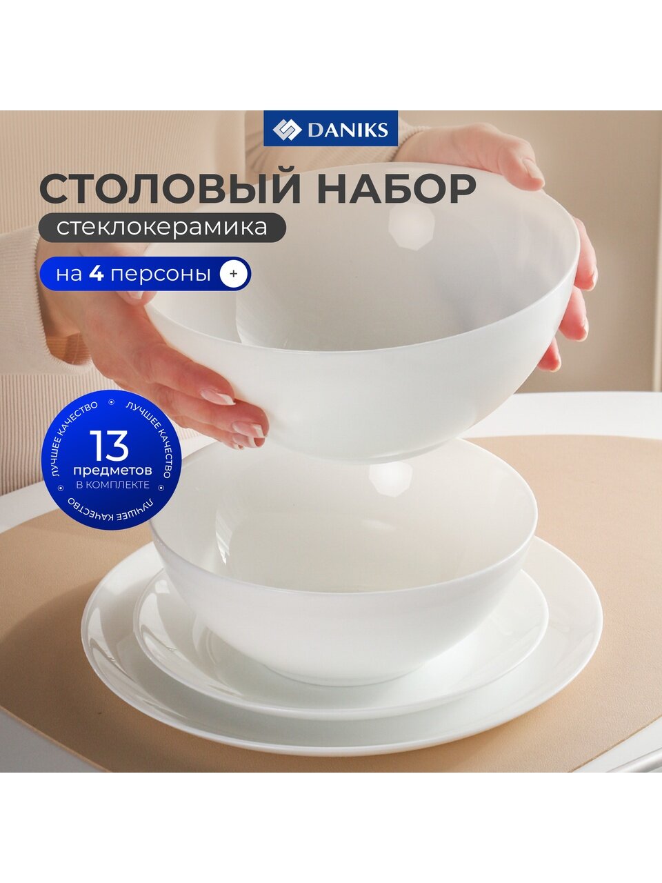 Стильный столовый сервиз Daniks Бэль-1 из стеклокерамики на 4 персоны — 13 предметов для уютных семейных ужинов и стильной сервировки без лишних затрат.
