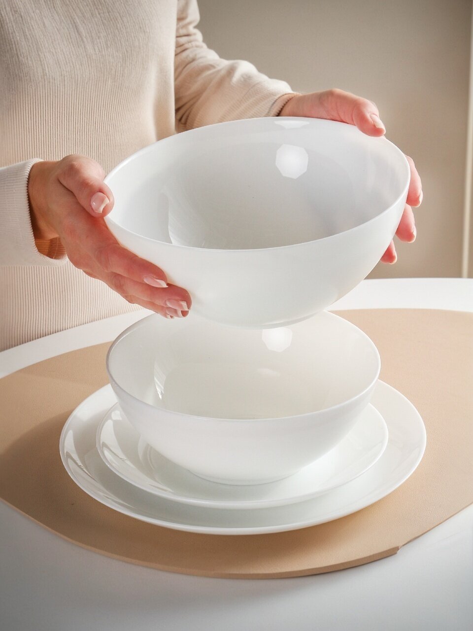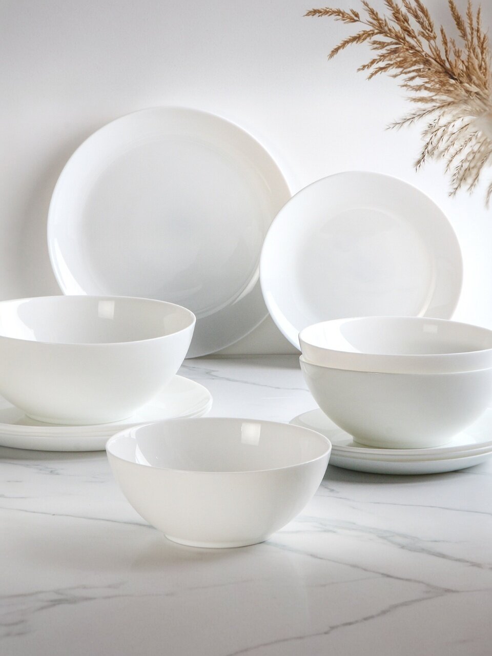 В отличие от классических фарфоровых или стеклянных наборов, стеклокерамика Daniks долговечнее и практичнее — не боится частого мытья и сохраняет белизну со временем. Если вы спрашиваете, чем отличается стеклокерамика от других материалов, — она легче, но не уступает по прочности. Как использовать сервиз Daniks Бэль-1? Просто сервируйте стол для семейного обеда, праздничного ужина или выездного пикника на даче — набор универсален и компактен.