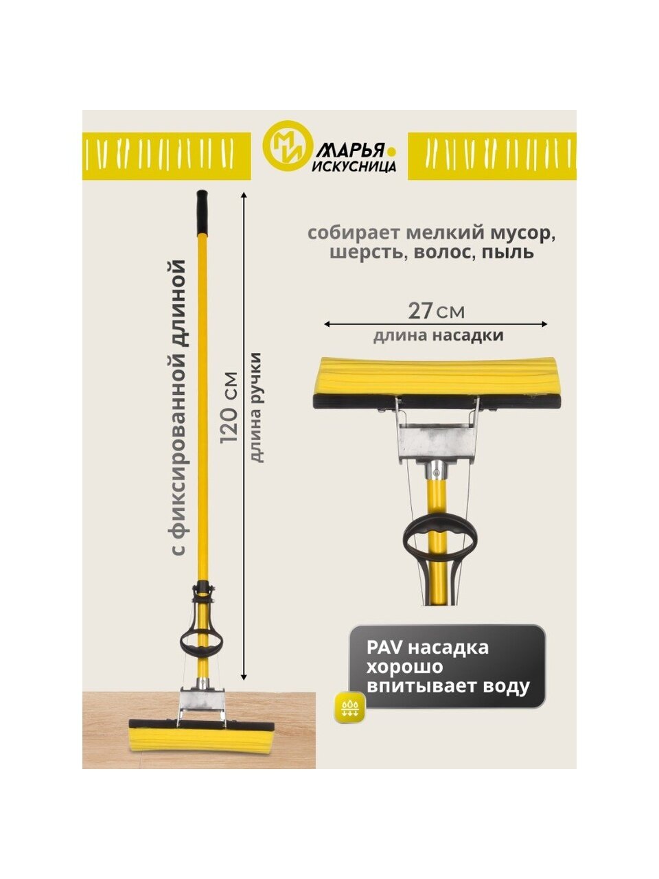 Швабра МОП губка, ПВА, 120х27 см, с отжим, желтый, Марья Искусница, KD-8019YELLOW — идеальный выбор для быстрой и эффективной уборки. Губка из ПВА отлично впитывает влагу и легко очищает любые поверхности. Благодаря удобному механизму отжима уборка становится проще и экономит время. Яркий желтый цвет добавит настроения в повседневные заботы.