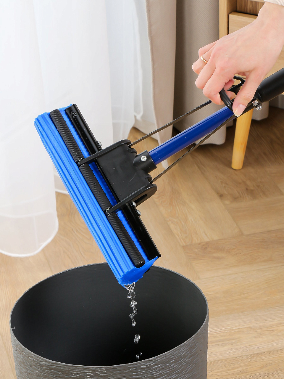 Отжим работает следующим образом: потяните на себя рычаг, ролики прокатятся по губке и удалят лишнюю влагу, благодаря чему ваши руки останутся сухими. У данной швабры телескопическая ручка. На ней имеется специальная регулировка, выдвижной механизм, с помощью которого выставляется оптимальная длина ручки под каждого человека.