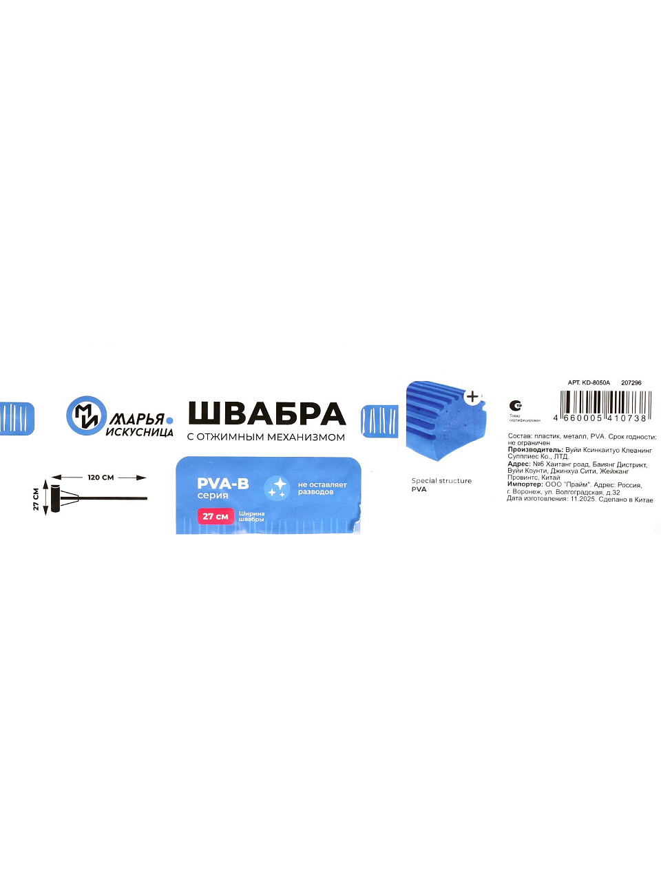 Вы можете приобрести «Швабра МОП губка, ПВА, 120х27 см, синяя, с отжимом, телескопическая ручка, синяя, Марья Искусница, KD-8050A» и другие товары в нашем интернет-магазине в Шахтах по низким ценам и с бесплатным самовывозом.