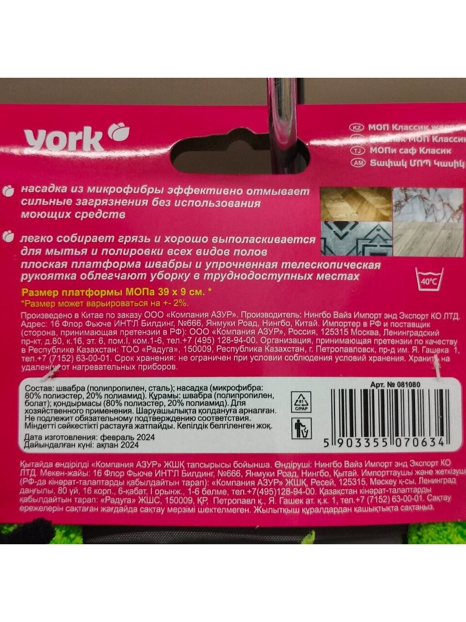 Вы можете приобрести «Швабра МОП плоская, 130 см, в ассортименте, телескопическая ручка, в ассортименте, York, Классик, 081080» и другие товары в нашем интернет-магазине в Санкт-Петербургe по низким ценам и с бесплатным самовывозом.