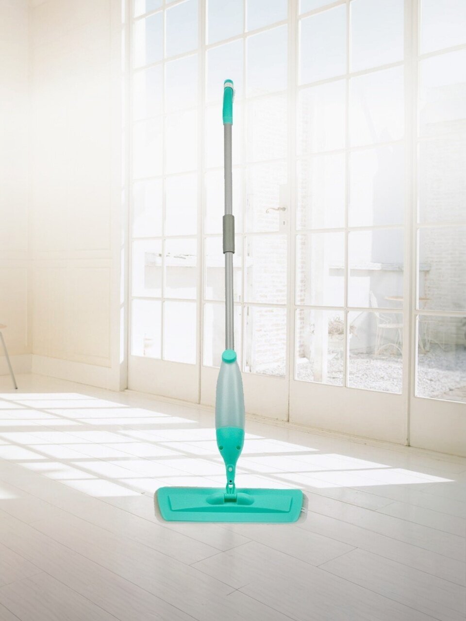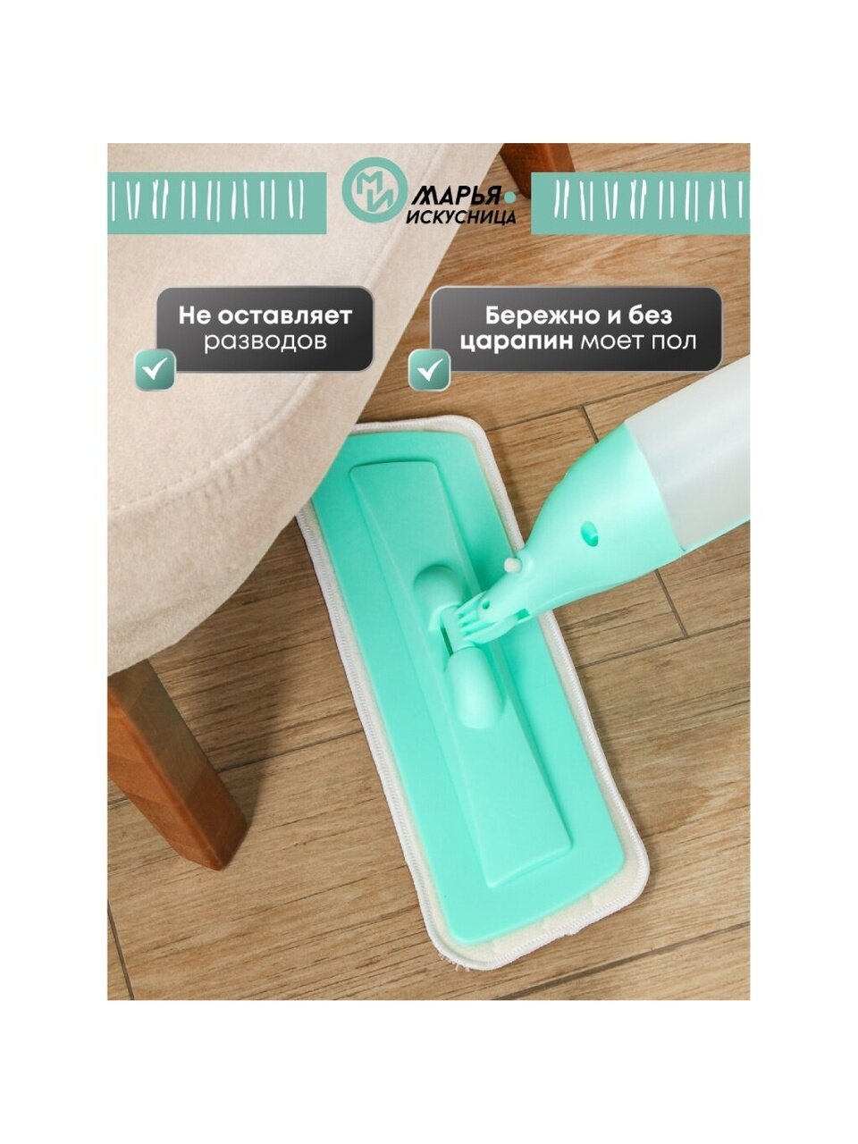 Перед мытьем полов необходимо заполнить резервуар на ручке швабры, установить его на место. Далее, при нажатии на рычаг на ручке, содержимое резервуара распыляется на пол перед тряпкой. Это позволяет вымыть пол без значительных затрат моющего раствора, при этом поверхность быстро высыхает.