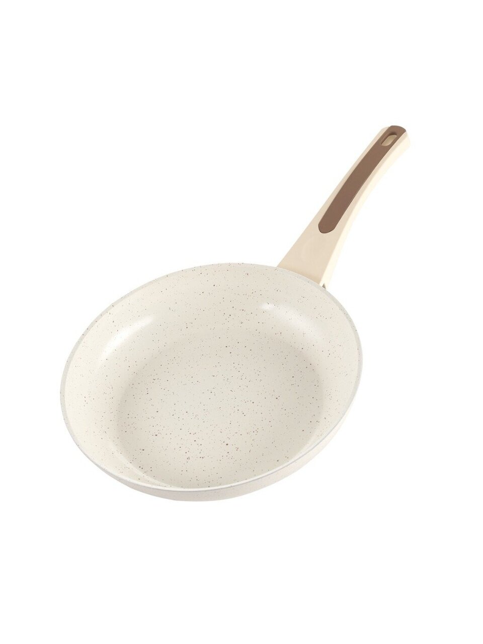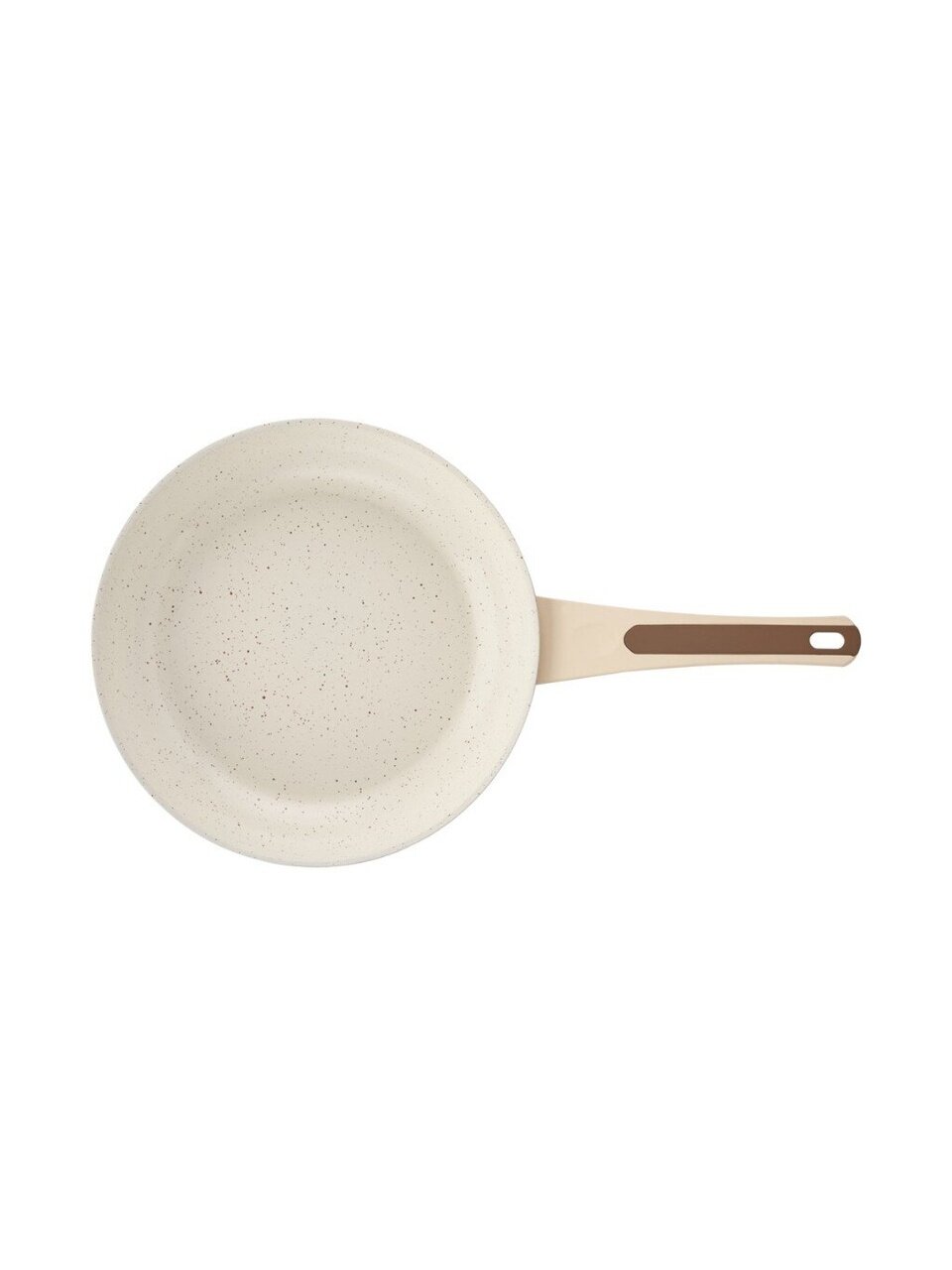 Диаметр 26 см, высота борта 50 мм, толщина дна 4 мм, стенки 2 мм. Форма круглая, цвет бежевый, подходит для жарки, тушения, приготовления омлетов и оладий.