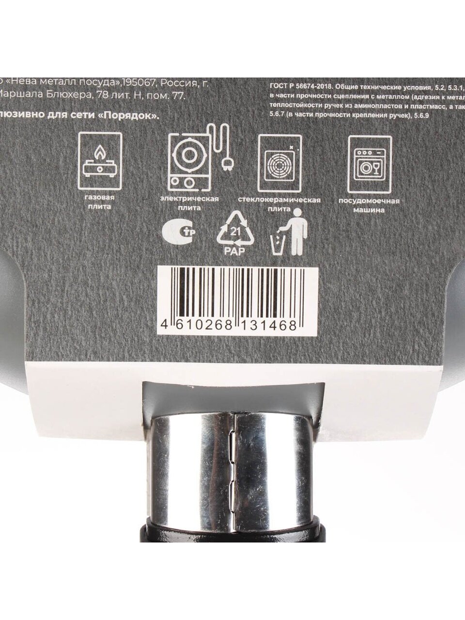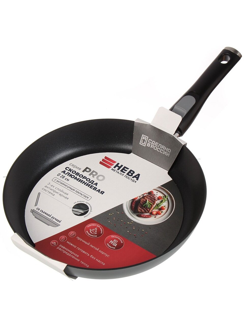 Сковорода литой алюминий 28 см Нева Металл Посуда Pro: антипригарное покрытие, съемная ручка — безопасно, удобно, долго служит, идеальна для дома и дачи.