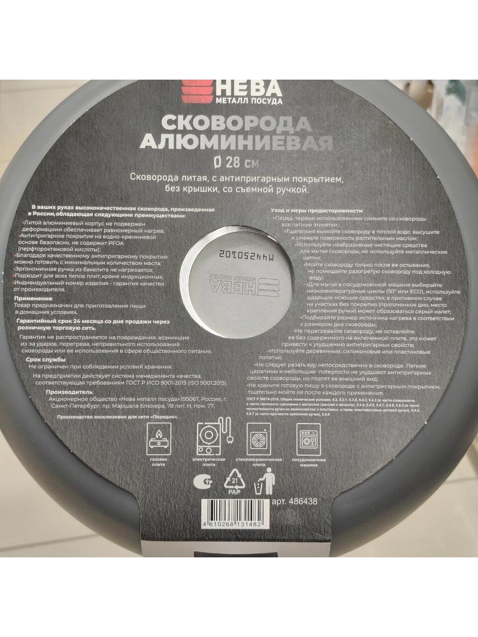 Вы можете приобрести «Сковорода литой алюминий, 28 см, антипригарное покрытие, Нева Металл Посуда, Pro, съемная ручка» и другие товары в нашем интернет-магазине в Старом Осколе по низким ценам и с бесплатным самовывозом.