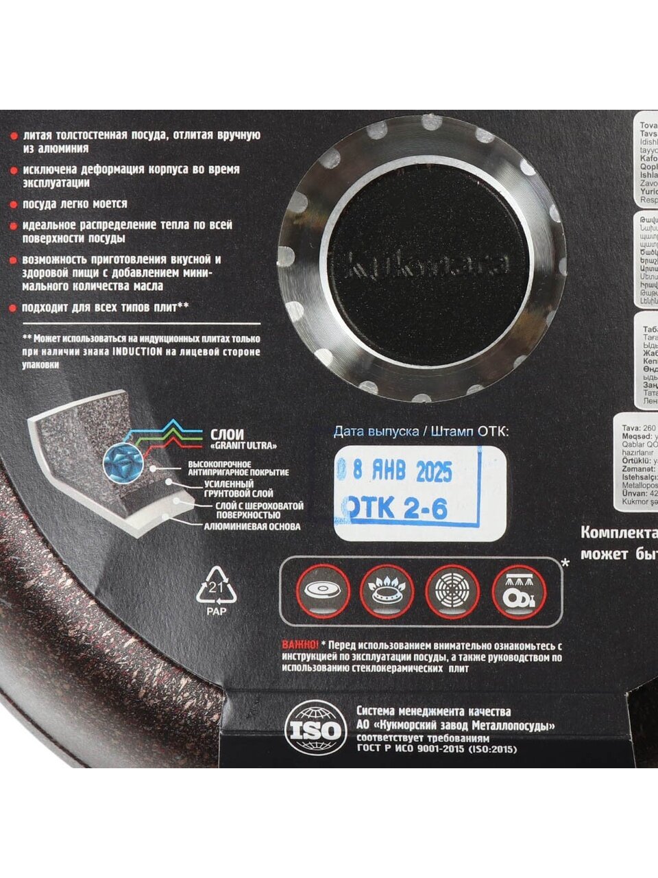 Сковорода Kukmara Granit Ultra Red Induction 28 см — прочное антипригарное решение для индукционных и любых плит. Надёжность, универсальность, выгодная цена.