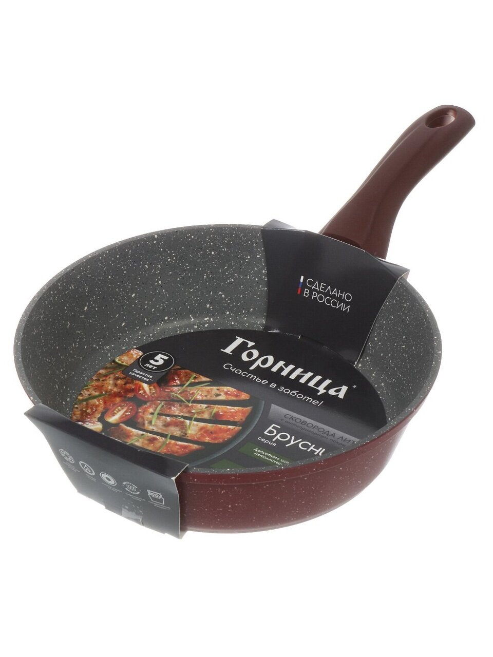 Сковорода литая алюминиевая 22 см Горница Comfort Брусника: антипригарное покрытие PFLUON, подходит для индукции, срок службы 5 лет. Готовьте легко и вкусно!