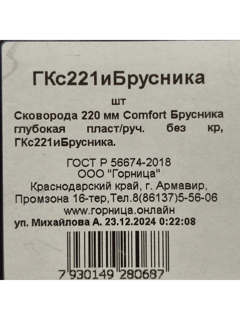 Покупайте сковороду Горница Comfort Брусника 22 см по выгодной цене с гарантией 60 месяцев – это разумный выбор для ценителей удобства и качества. Закажите с быстрой доставкой и начните готовить с удовольствием!
