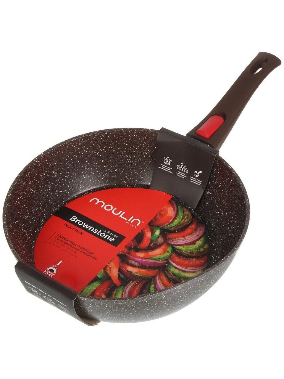 В отличие от классических чугунных или тонких алюминиевых сковород, Moulin villa Brownstone быстрее нагревается, сохраняет тепло и не деформируется при перепадах температур. Съемная ручка экономит место на кухне и облегчает мытьё. Модель устойчива к царапинам и рассчитана на ежедневное использование, а гарантия производителя — 12 месяцев. Если вы спрашиваете, подходит ли эта сковорода для посудомоечной машины или как использовать сковороду для разных блюд, — да, уход максимально простой, а глубина позволяет готовить и стейки, и рагу.