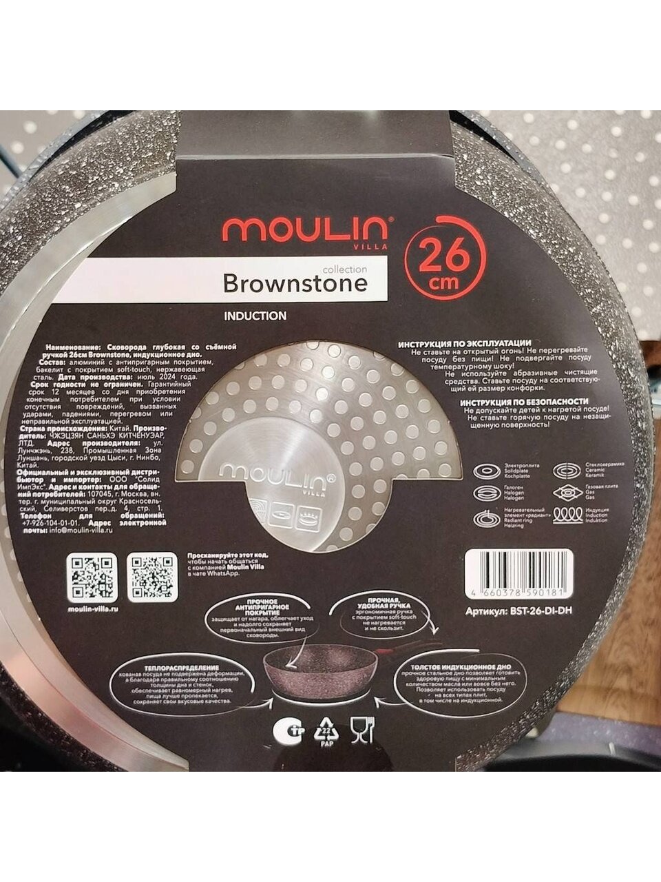 Вы можете приобрести «Сковорода алюминий, 26 см, антипригарное покрытие, Moulin villa, Brownstone, съемная ручка, индукция, BST-26-DI-DH» и другие товары в нашем интернет-магазине в Санкт-Петербургe по низким ценам и с бесплатным самовывозом.