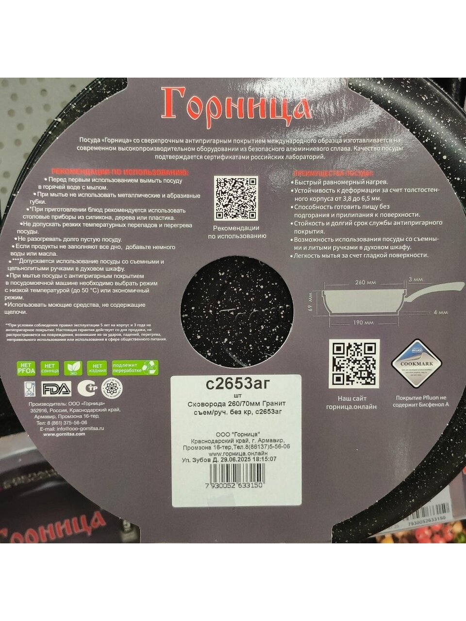 Как использовать сковороду Горница Гранит? Просто снимите ручку при необходимости, готовьте любимые блюда без масла или с минимальным его количеством — покрытие рассчитано на долгий срок службы (гарантия 60 мес.). Идеальный вариант для тех, кто ценит удобство, практичность и безопасность на кухне.