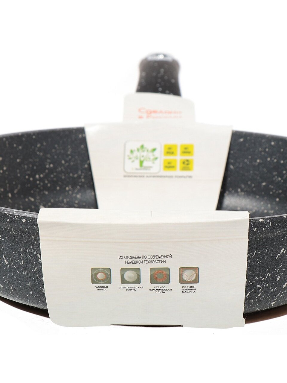 Сковорода Горница Гранит 26 см — литой алюминий, мраморное антипригарное покрытие, съемная ручка. Для идеальной жарки без пригорания и сложного ухода.