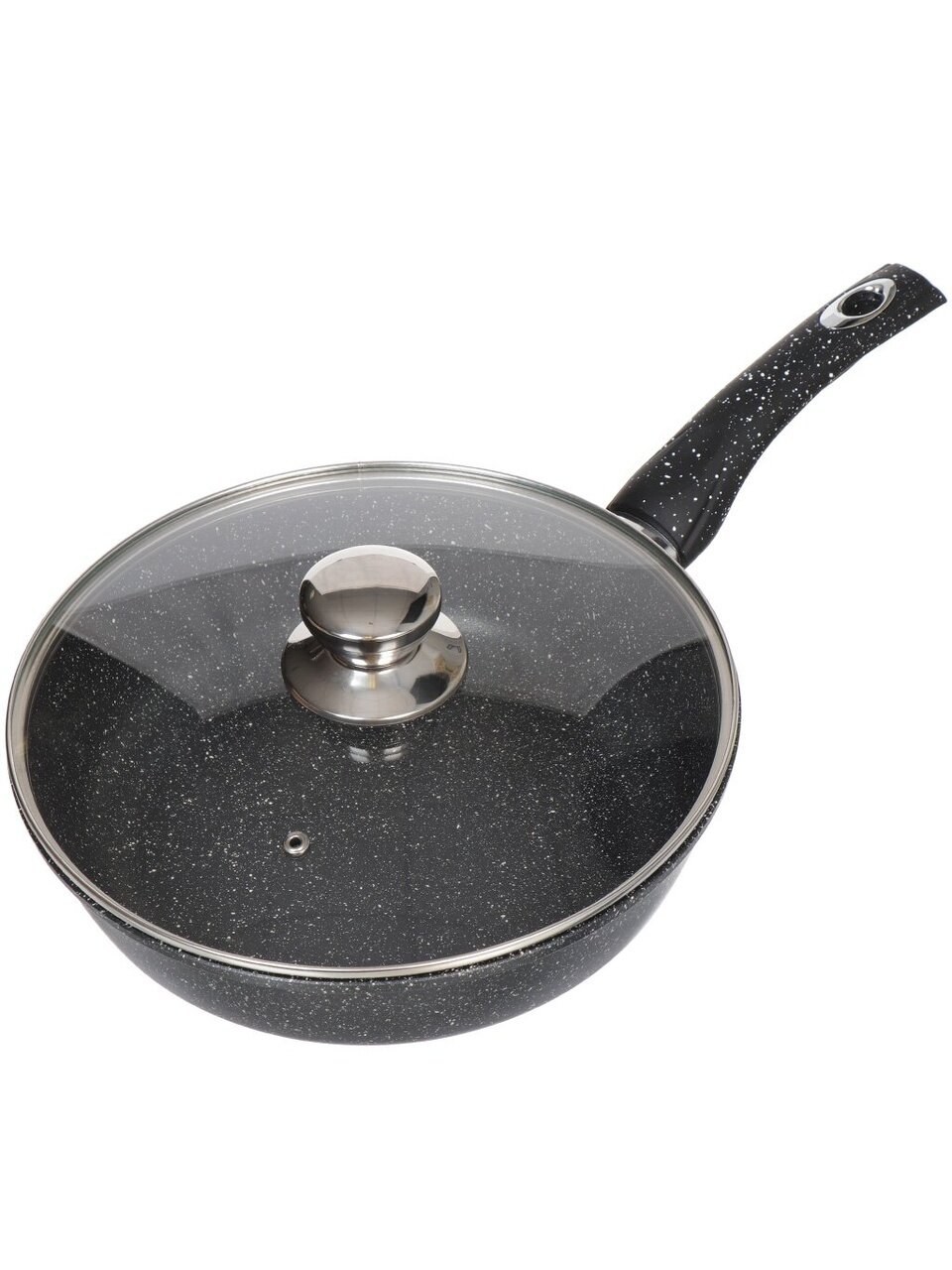 Сковорода литой алюминий 26 см Горница Гранит — антипригарная с крышкой, для мяса и омлета. Прочная, долговечная, выгодно для дома и дачи.