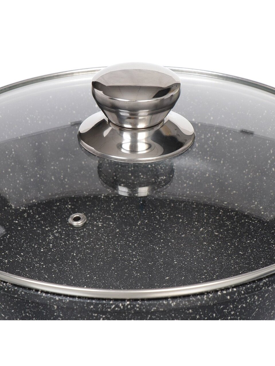 - Мраморное антипригарное покрытие — пища не пригорает, легко мыть, подходит для ежедневного использования