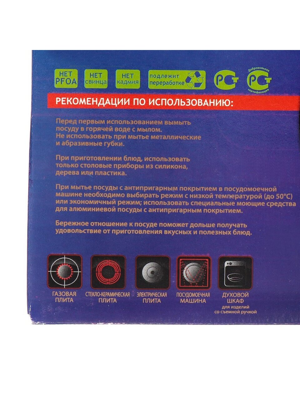 - Толстое дно 6 мм и литой алюминий — равномерный прогрев, долгий срок службы, оптимальный диаметр 26 см