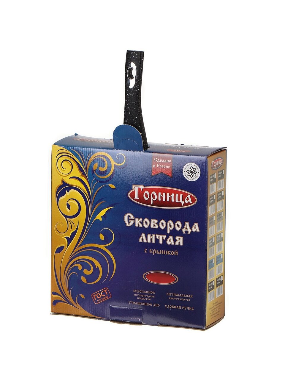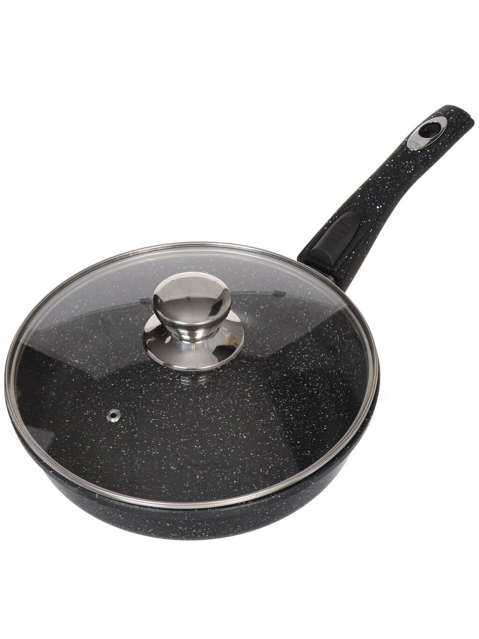 Сковорода Горница Гранит 24 см: литой алюминий, мраморное антипригарное покрытие, крышка и съемная ручка — для идеальной готовки дома и на даче.