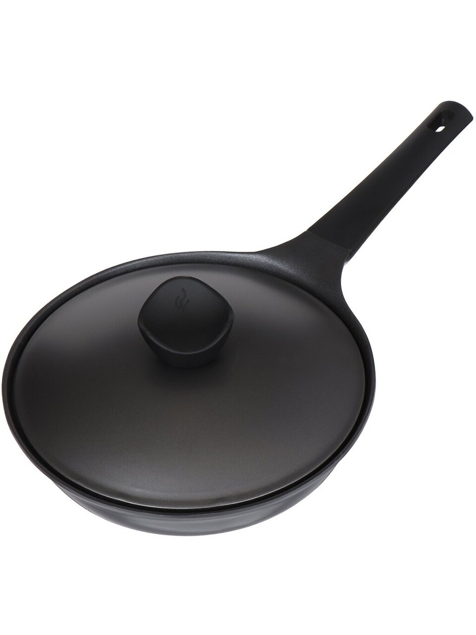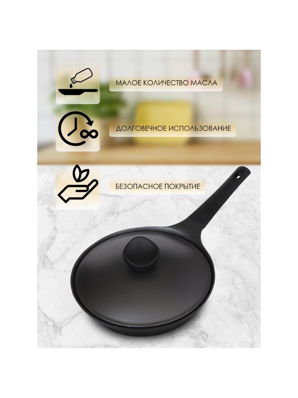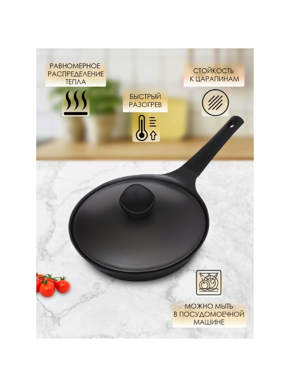 - Оптимальный размер 24 см и толстое дно 5 мм для равномерного прогрева и долговечности