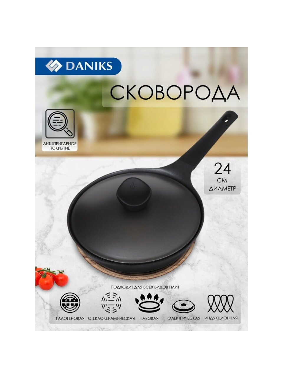 Сковорода Daniks Shoven 24 см — литой алюминий, тефлоновое покрытие, крышка, подходит для индукции. Готовьте без пригорания и хлопот!