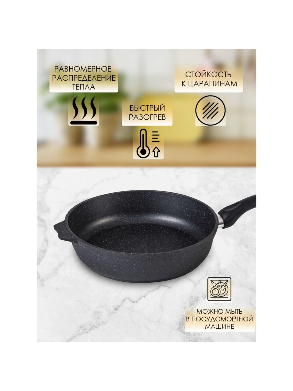 Сковорода Мечта Гранит black 28 см — антипригарное решение для здорового питания: литой алюминий, гранитное покрытие, долговечность и удобство каждый день.