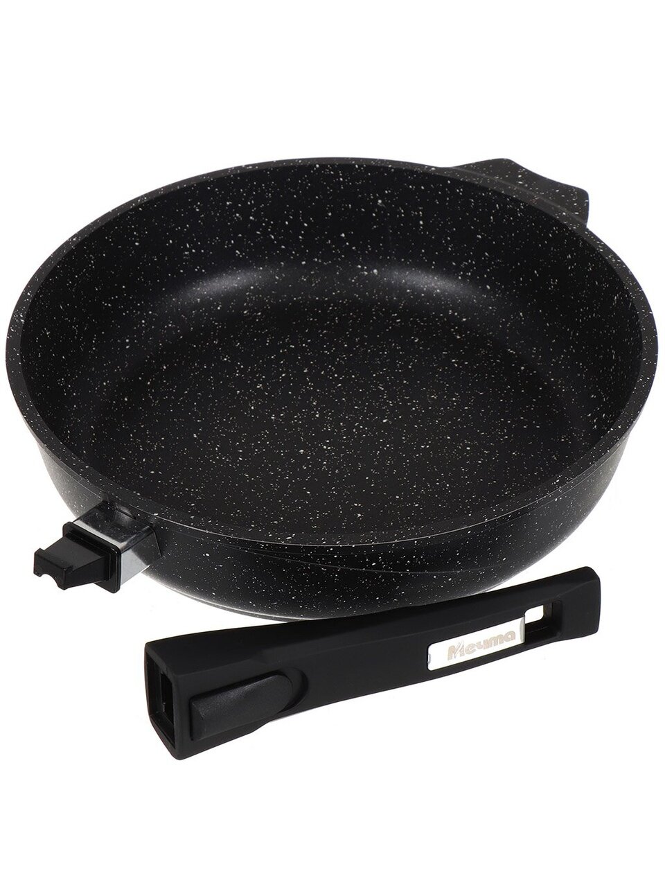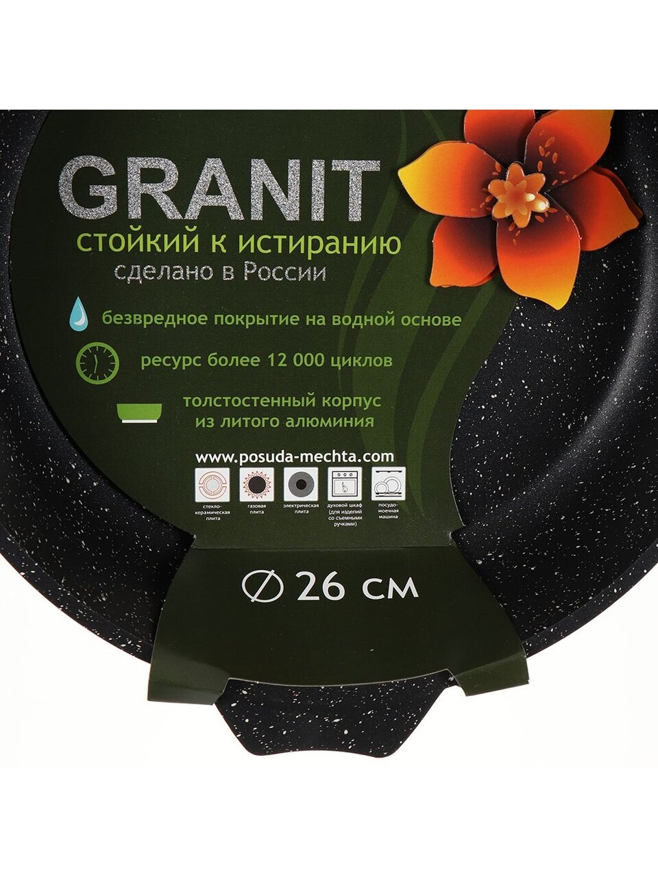 Сковорода литой алюминий 26 см Мечта Гранит black — антипригарное покрытие, съемная ручка, долговечность и универсальность для кухни и дачи.