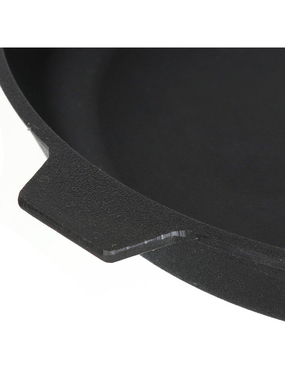 Чугунная сковорода диаметром 32 см от Камской посуды — это выбор для тех, кто ищет надежную посуду для индукционных плит, газовых и электрических плит, духовки или открытого огня. Благодаря толстому дну (4,5 мм) и стенкам (4 мм) сковорода отлично держит тепло, что важно для равномерной прожарки мяса, рыбы, овощей и даже выпечки. Отсутствие антипригарного покрытия позволяет использовать любые кухонные приборы и не опасаться за долговечность.