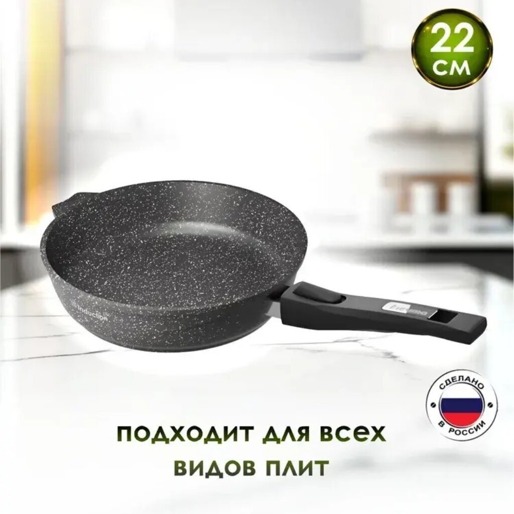 Сковорода 22 см из литого алюминия Мечта Гранит Black Induction Pro: идеальный выбор для индукции, антипригарное покрытие, съемная ручка, долговечность и стиль.